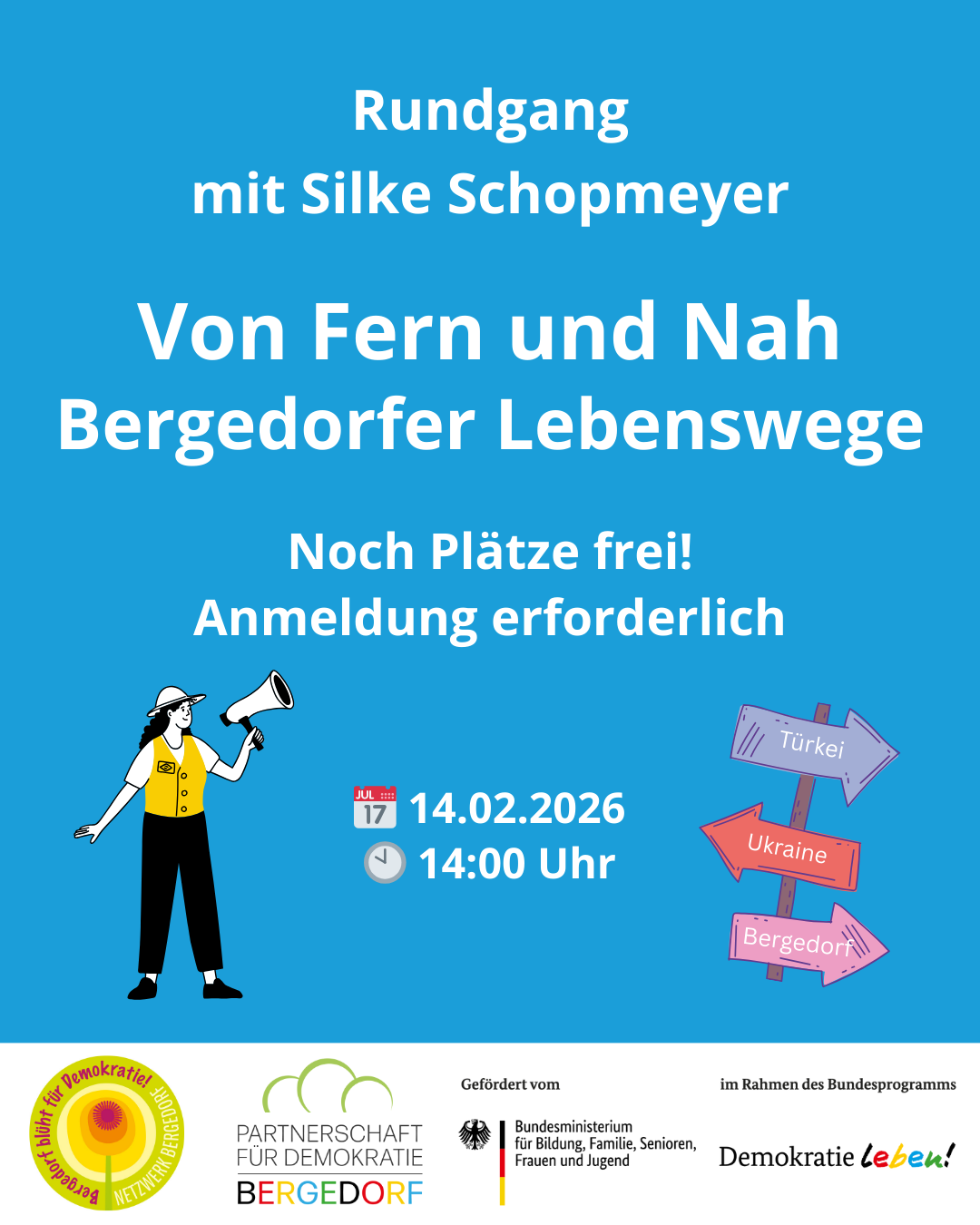 Die Veranstaltung findet im Rahmen der Internationalen Wochen gegen Rassismus (IWgR) 2026 statt. Sie ist ein Angebot der Partnerschaft für Demokratie Bergedorf. Diese wird im Rahmen des Bundesprogramms „Demokratie leben!“ gefördert vom Bundesministerium für Bildung, Familie, Senioren, Frauen und Jugend (BMBFSFJ).